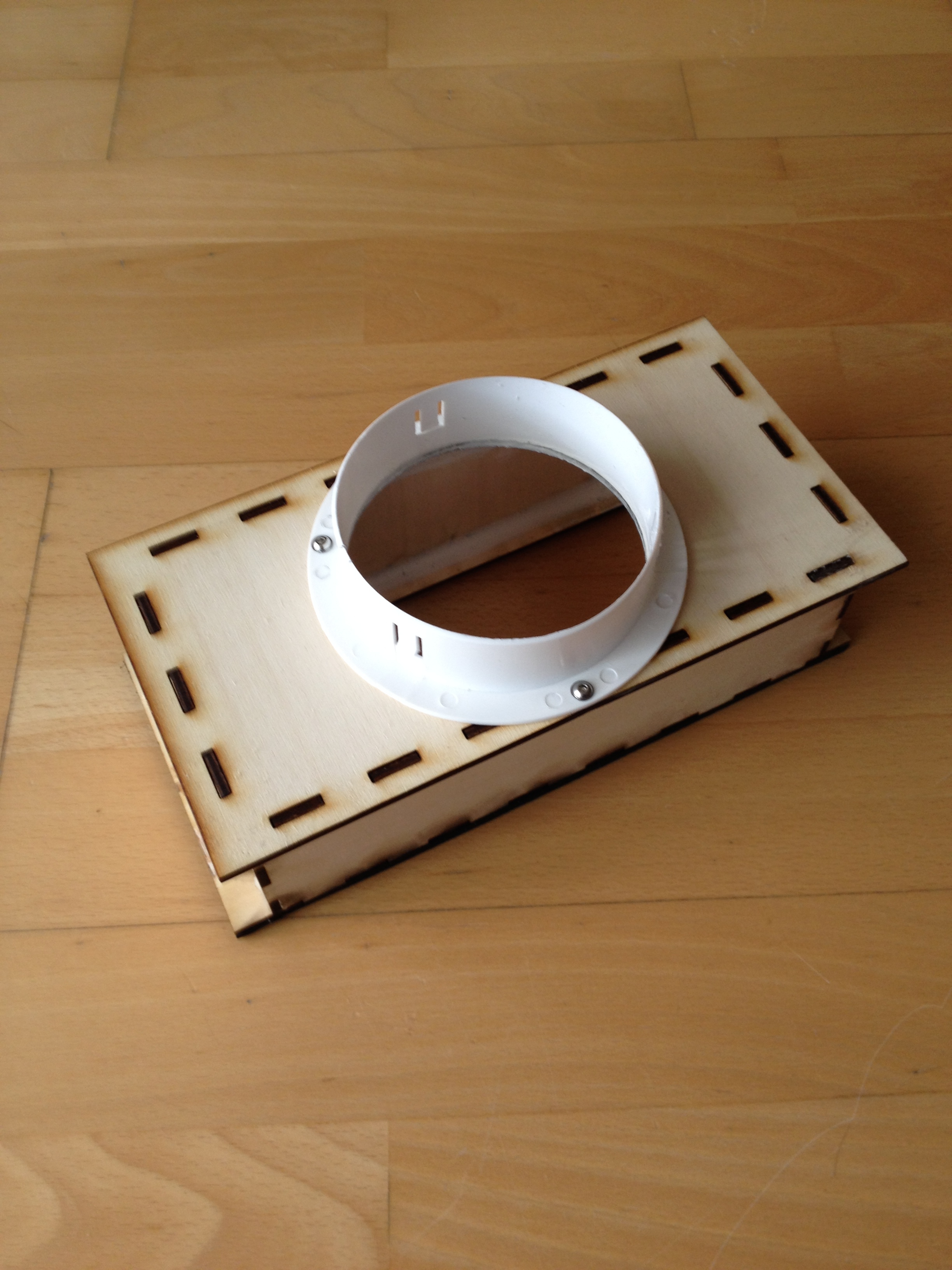 Mein Laserschneider war mit einem Lüfter ausgestattet, der ein Luftvolumen von bis zu 150 m3 / h bewältigen konnte. In einem geschlossenen Raum war das nicht genug. Deshalb habe ich auf 400m3 / h Lüfter aufgerüstet und den Auspuffschlauchadapter gewechselt. Um möglichst flexibel zu sein, enthält der Adapter eine Standard-100-mm-Kanalverbindung. Es basiert auf 3mm Birkensperrholz. Zum maschinenseitigen Abdichten habe ich ein 5mm dickes Schaumband von 3M verwendet. Das Teil findest du auf Thingiverse