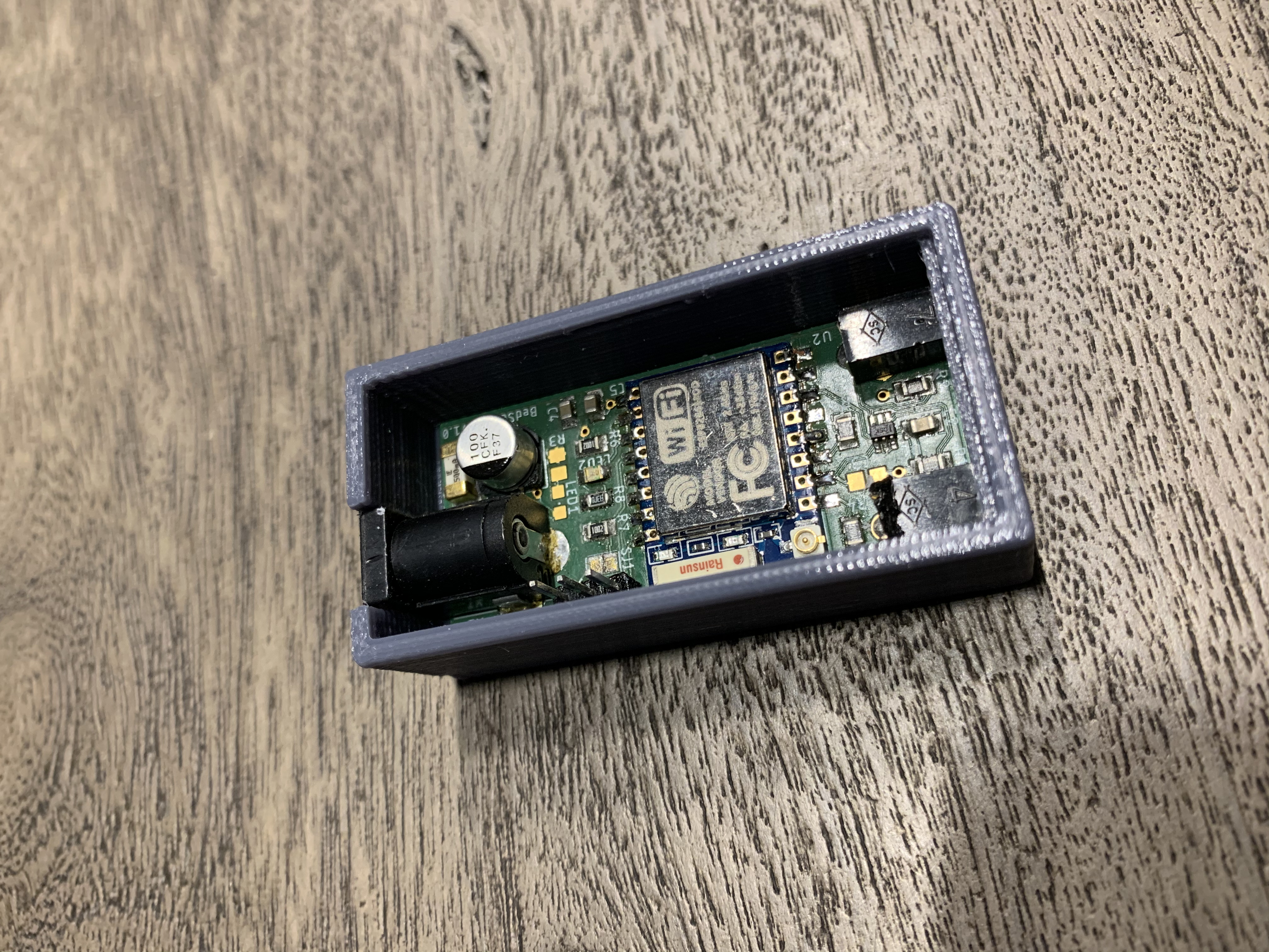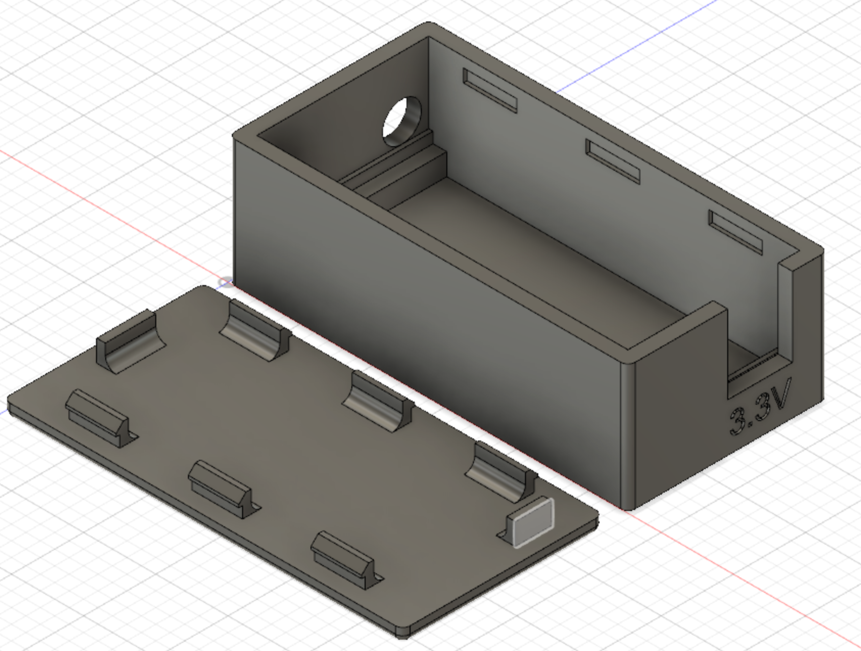 Mit einem 3D Drucker lässt sich dann noch ein unauffälliges Gehäuse verwirklichen was man leicht mit doppelseitigen Klebeband unterhalb des Bettes befestigen kann.