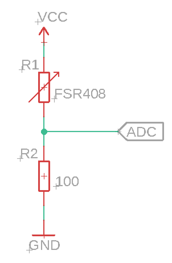V_ADC = Vcc ( R2 / (R2 + R1) )