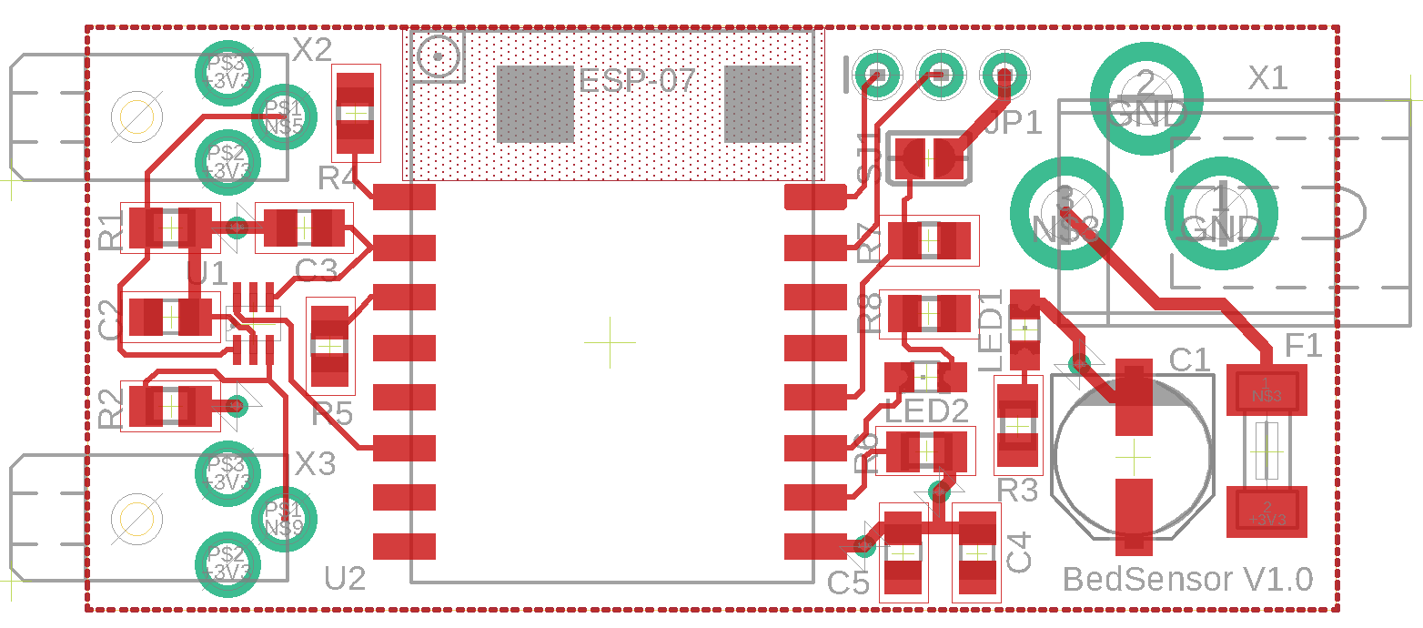 Der Anschluss der Sensoren erfolgt über Standard 2.5mm Klinkenbuchsen (JY029). Die Spannungsversorgung ist auch steckbar mit einer 5.5/2.1mm Hohlbuchse (HEBW21). Hierzu findet man sehr preiswerte Steckernetzteile mit stabilisiertem 3.3V Gleichspannungsausgang. Mehr drahtgebundene Konnektivität benötigt der Bettsensor nicht.