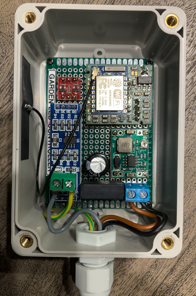 Im Garten liegt bei uns eine 230V Versorgung, die aber nicht schaltbar oder dimmbar ist, da andere Verbraucher wie Aussensteckdosen und das Bodenlicht daran angeschlossen sind. Eine Zusatzverdrahtung zum Haus habe ich ausgeschlossen, nachdem ich erfolglos versucht habe den Verlauf der unterirdischen Rohre zu erfassen. Also muss etwas drahtloses her, das (wie immer) auch in Home Assistant einbindbar ist.
