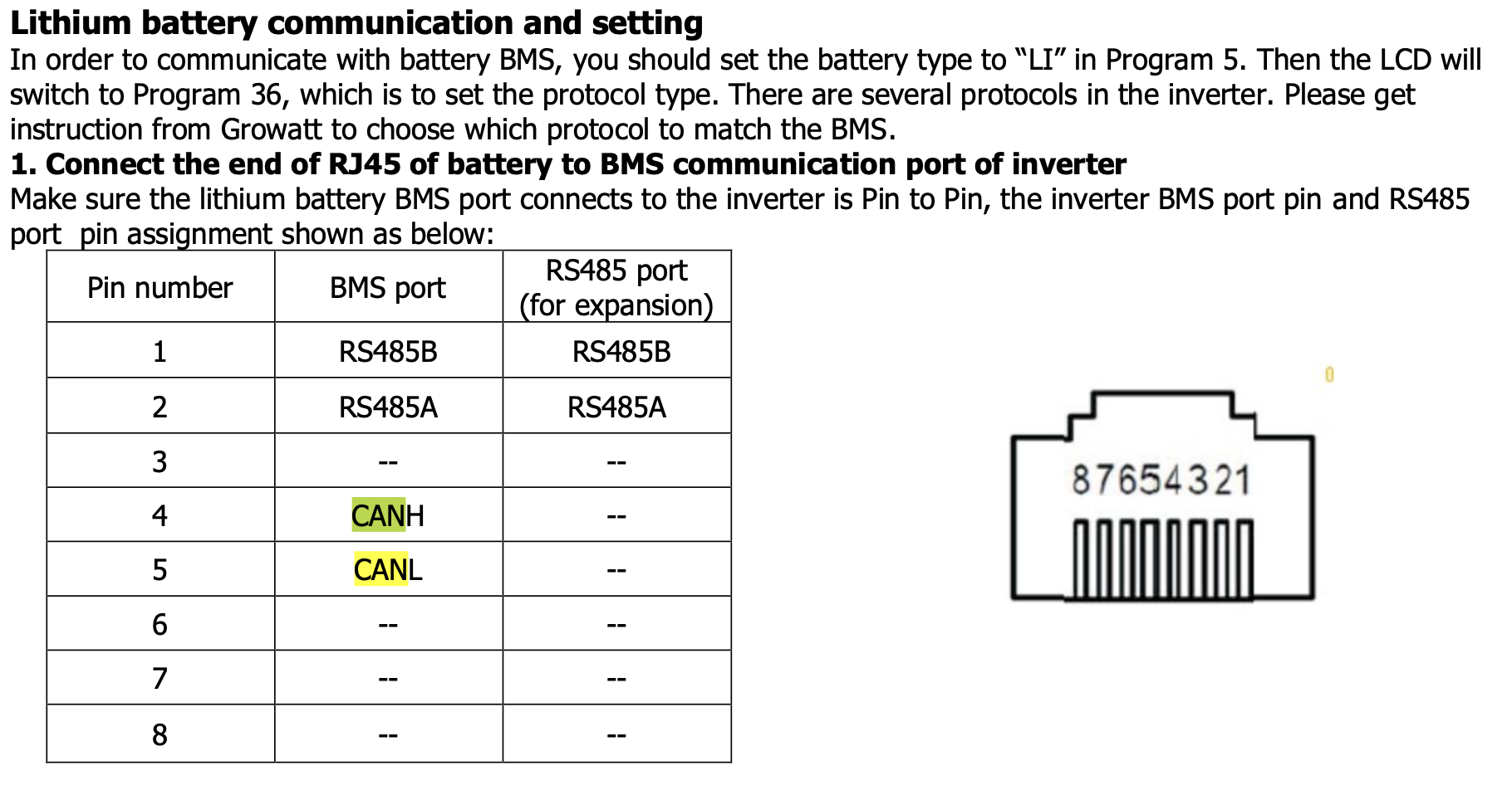 Unfortunately the battery manufacturer use own proprietary protocols. At least the protocol from PYLONTECH can be easily found in the internet (see download area). For GROWATT it's the protocol setup CAN L52 (Protocol)