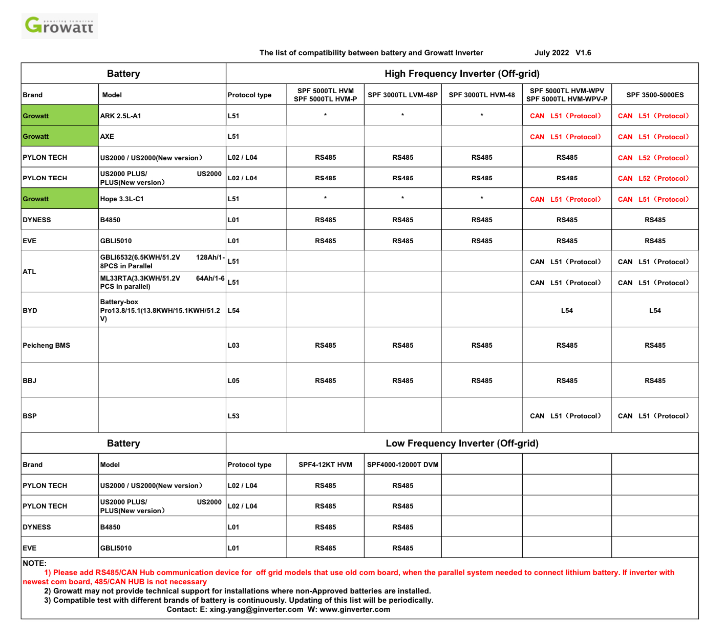 Unfortunately the battery manufacturer use own proprietary protocols. At least the protocol from PYLONTECH can be easily found in the internet (see download area). For GROWATT it's the protocol setup CAN L52 (Protocol)