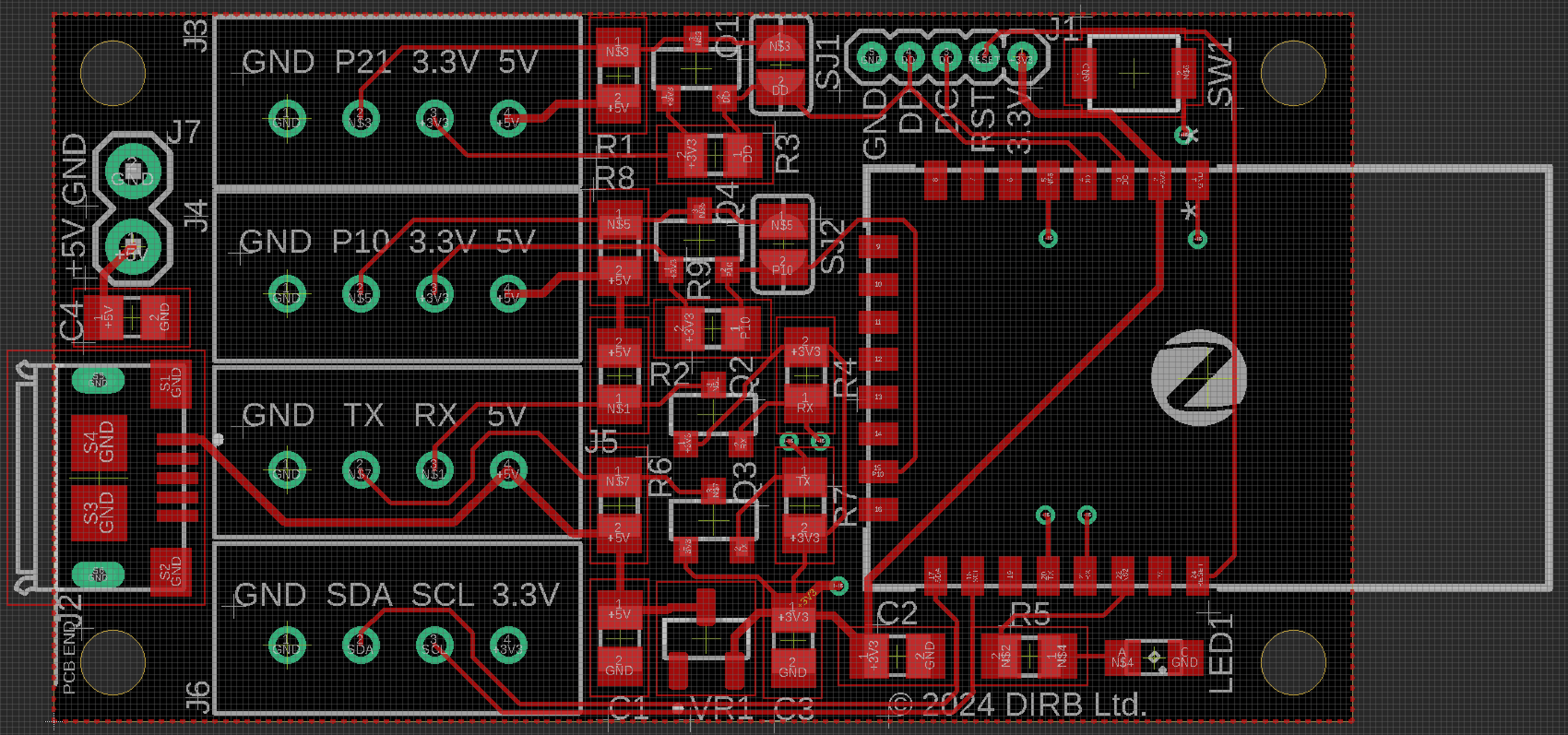 In order to cover a bunch of application I designed a standard PCB that allows to connect sensors and/or actuators via GPIO, I²C or UART. Most with level shifter to allow 5V and 3.3V interfaces.